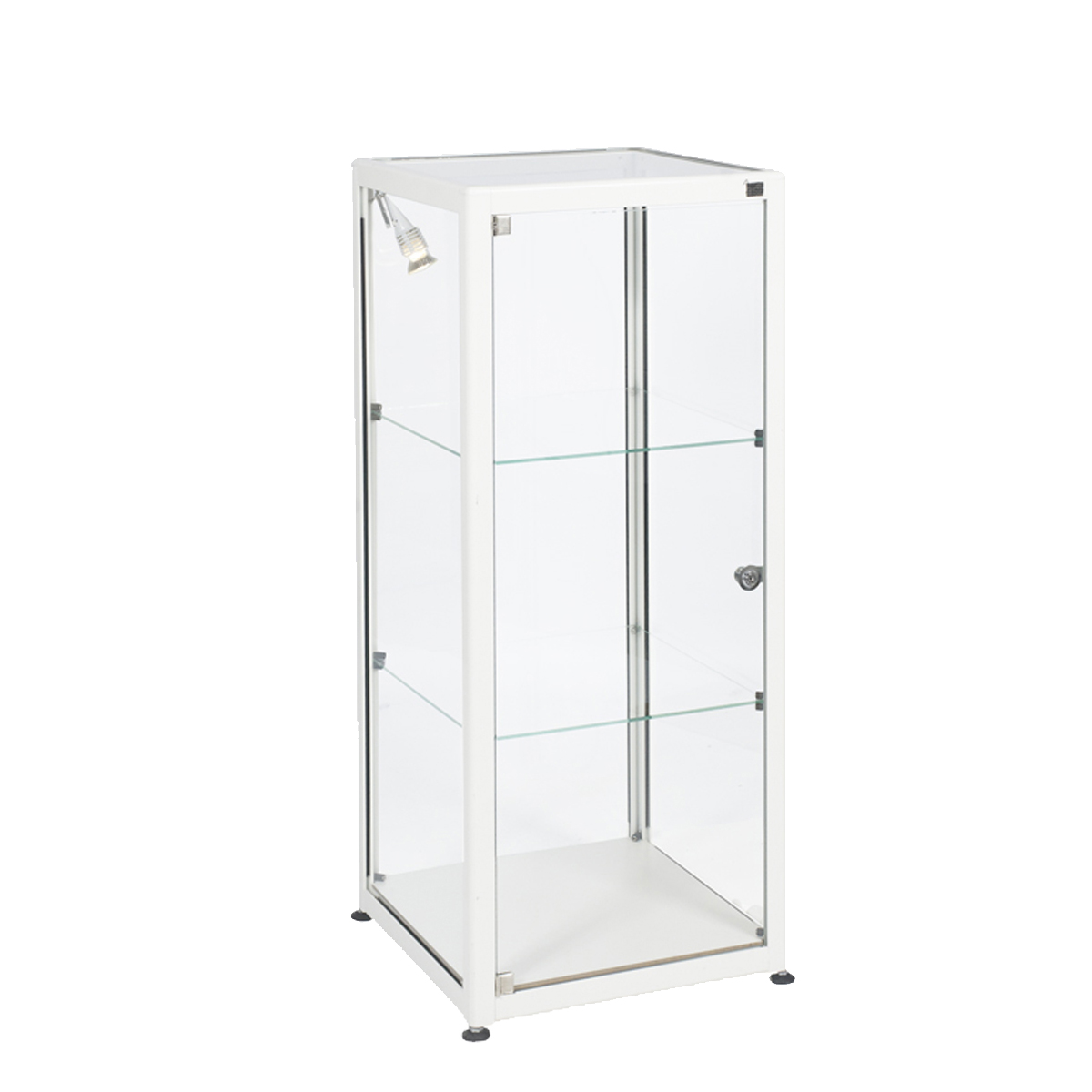 Cette grande vitrine possède 3 étagères réglables (sur demande avant livraison) et ferme à clé. Elle est éclairée grâce à un spot halogène.